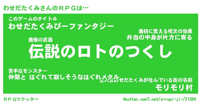 | 料理風あだ名 | 『節約★わせだたくみと油揚げの玉子丼』 |