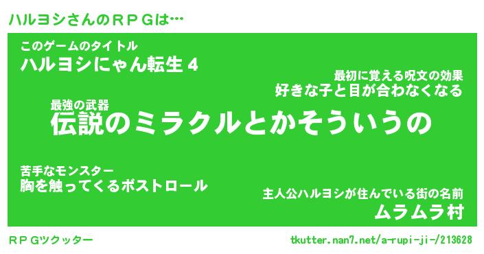 | ファンタジー風あだ名 | 『ハルフェル』『エターナルハルヨシー』 |