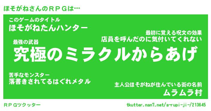 | 胡散臭い通販商品みたいなあだ名 | 『モテモテ間違いなしブレスレット…その名も「ほそがね」』 |