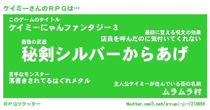 | ファンタジー風あだ名 | 『ケイフェル』『エターナルケイミーー』 |