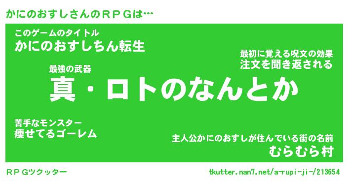 | 男性向けラノベタイトル風あだ名 | 『カニノオスシアートオンライン』 |