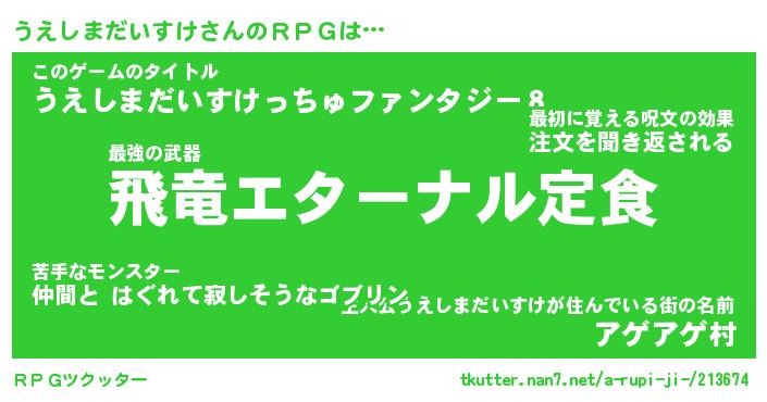 | 胡散臭い通販商品みたいなあだ名 | 『億万長者になれる水晶球…その名も「うえしまだいすけ」』 |