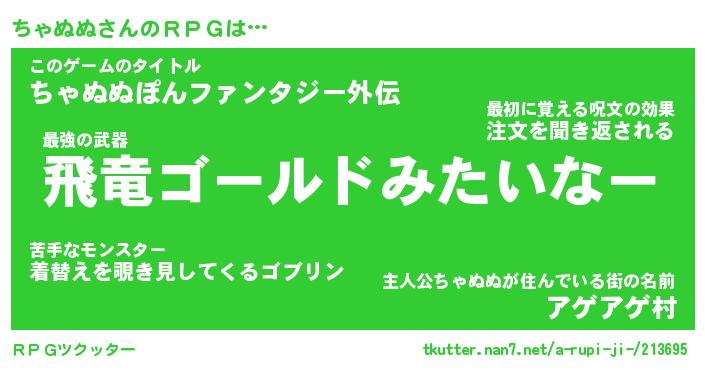 | 男性向けラノベタイトル風あだ名 | 『チャヌヌアートオンライン』 |