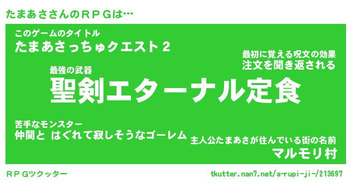 | ファンタジー風あだ名 | 『タマフェル』『エターナルタマアサー』 |
