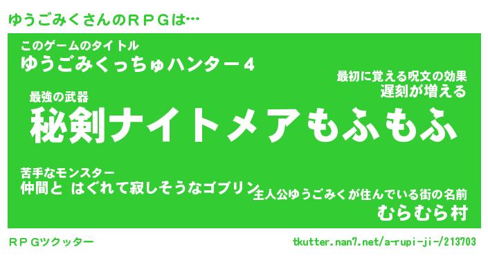 | ファンタジー風あだ名 | 『ユウフェル』『エターナルユウゴミクー』 |