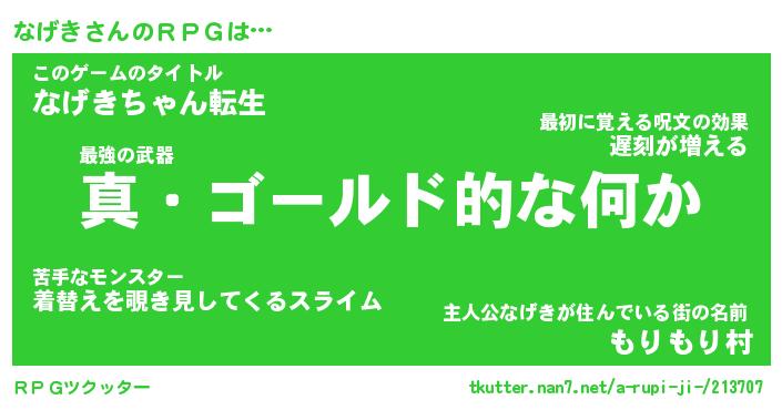 | 男性向けラノベタイトル風あだ名 | 『ナゲキアートオンライン』 |