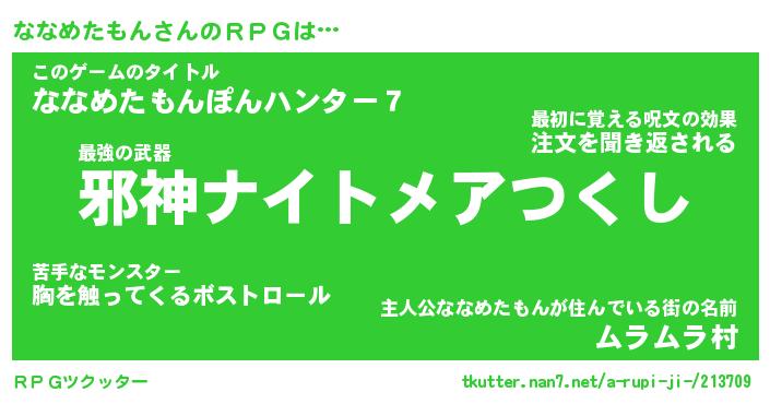 | 男性向けラノベタイトル風あだ名 | 『ナナメタモンアートオンライン』 |
