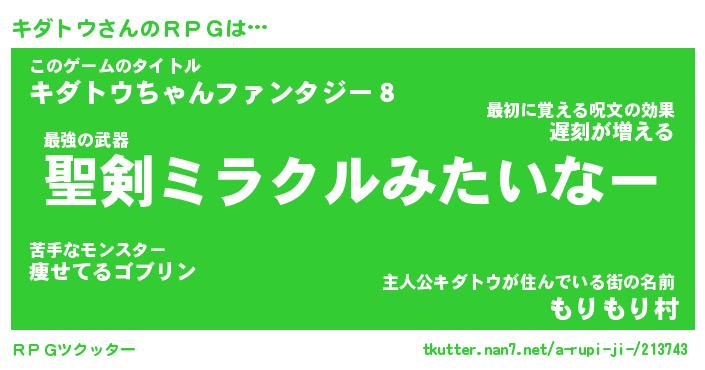 | 男性向けラノベタイトル風あだ名 | 『キダトウの憂鬱』 |