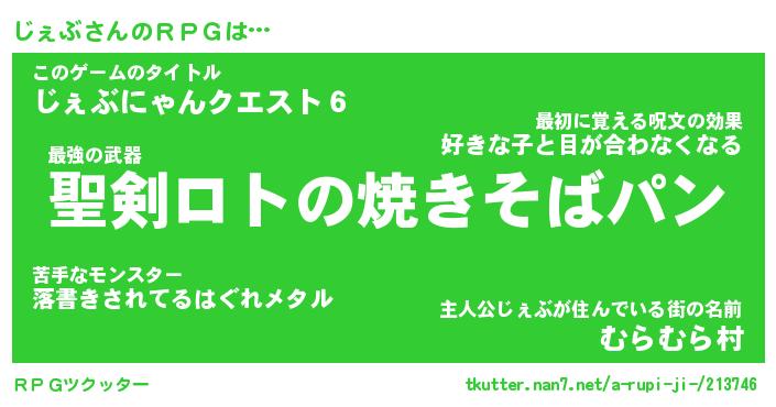 | 伝説のあだ名 | 『伝説の竜騎士じぇぶ』 |