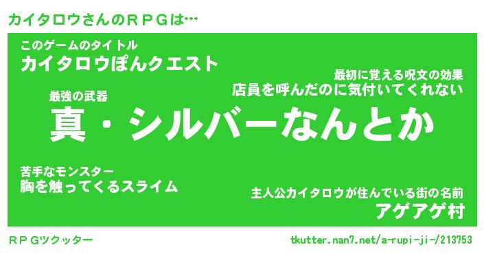 | 男性向けラノベタイトル風あだ名 | 『カイタロウアートオンライン』 |