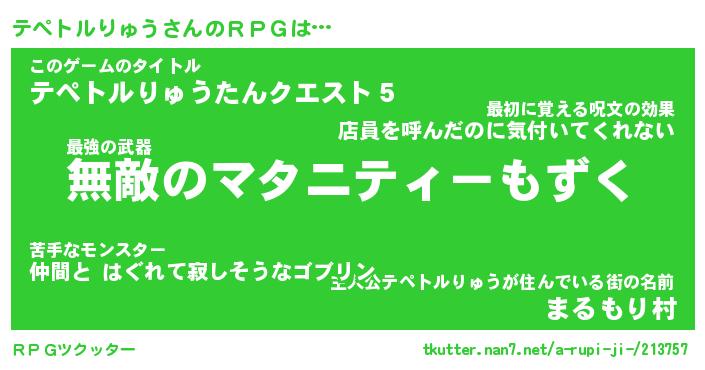 | 料理風あだ名 | 『節約★テペトルりゅうと油揚げの玉子丼』 |