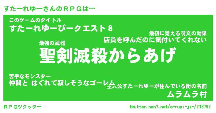 | 男性向けラノベタイトル風あだ名 | 『すたーれゆーの憂鬱』 |