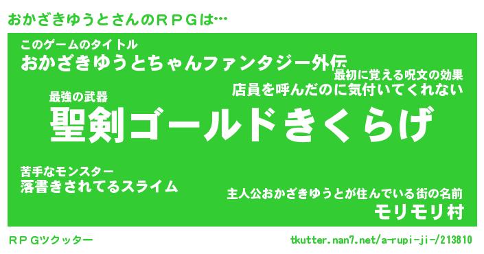 | 男性向けラノベタイトル風あだ名 | 『おかざきゆうとの憂鬱』 |