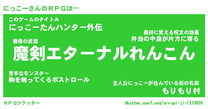 | 男性向けラノベタイトル風あだ名 | 『にっこーの憂鬱』 |