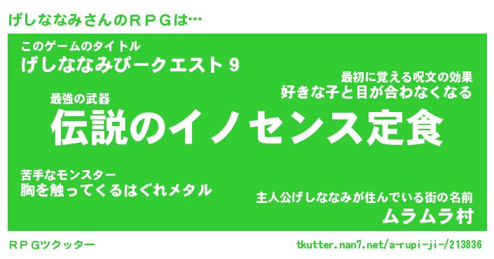 | 胡散臭い通販商品みたいなあだ名 | 『モテモテ間違いなし霊験あらたかなお札…その名も「げしななみ」』 |