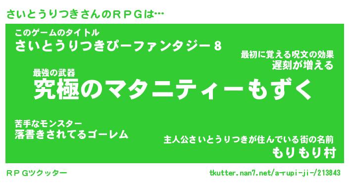 | 料理風あだ名 | 『節約★さいとうりつきと油揚げの玉子丼』 |