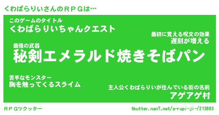 | 胡散臭い通販商品みたいなあだ名 | 『必ず成功する霊験あらたかなお札…その名も「くわばらりい」』 |