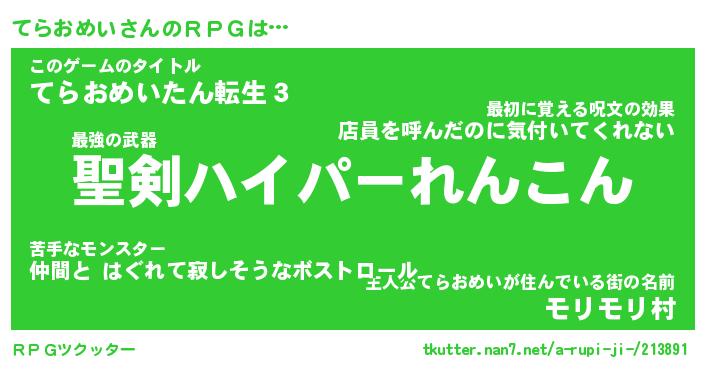 | 伝説のあだ名 | 『伝説の竜騎士てらおめい』 |
