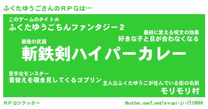 | ヒーロー風カッコイイあだ名 | 『スーパーフクタユウゴ』『幻影騎士フク』 |