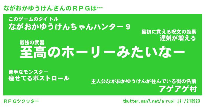 | 男性向けラノベタイトル風あだ名 | 『ナガオカユウケンアートオンライン』 |