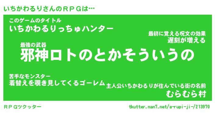 | 男性向けラノベタイトル風あだ名 | 『イチカワルリアートオンライン』 |