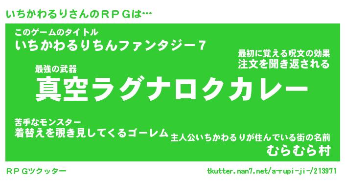 | 男性向けラノベタイトル風あだ名 | 『イチカワルリアートオンライン』 |
