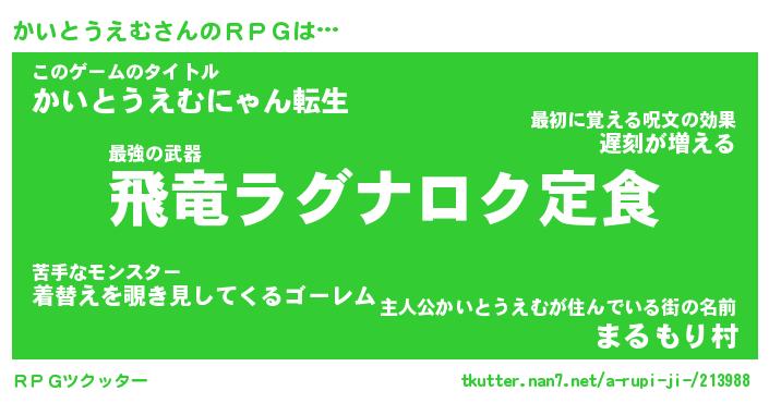 | 男性向けラノベタイトル風あだ名 | 『カイトウエムアートオンライン』 |