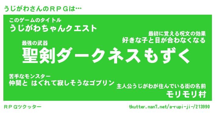 | 男性向けラノベタイトル風あだ名 | 『うじがわの憂鬱』 |