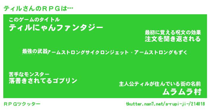 | ファンタジー風あだ名 | 『ティフェル』『エターナルティルー』 |