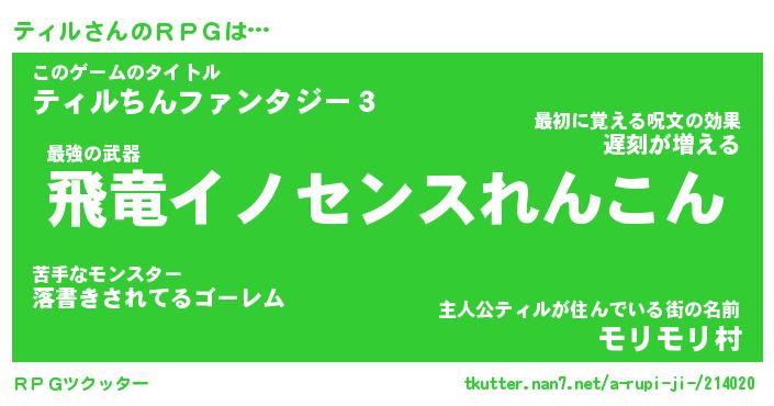 | ファンタジー風あだ名 | 『ティフェル』『エターナルティルー』 |
