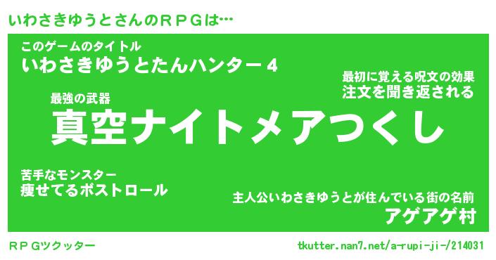| 伝説のあだ名 | 『封印されしスナイパーいわさきゆうと』 |