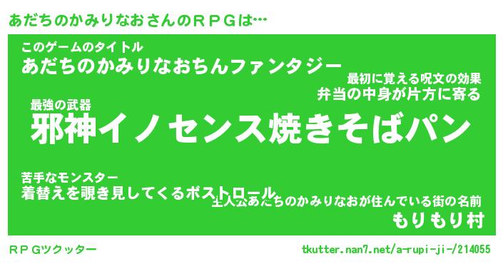 | 伝説のあだ名 | 『封印されしスナイパーあだちのかみりなお』 |