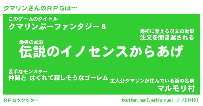 | ファンタジー風あだ名 | 『クマフェル』『エターナルクマリンー』 |