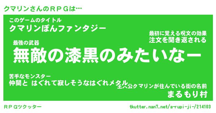 | ファンタジー風あだ名 | 『クマフェル』『エターナルクマリンー』 |