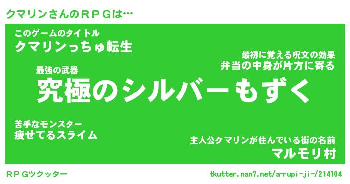 | 男性向けラノベタイトル風あだ名 | 『クマリンアートオンライン』 |