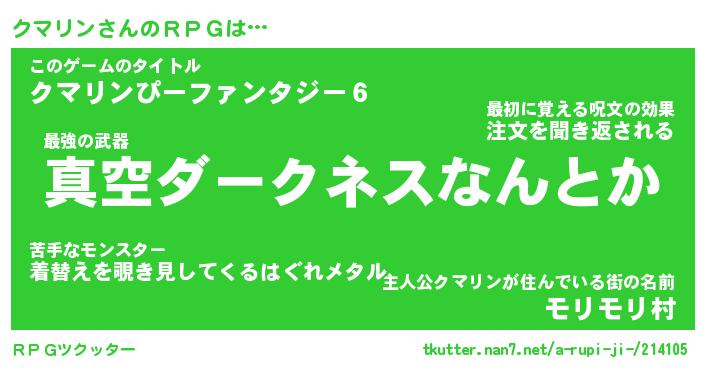 | ファンタジー風あだ名 | 『クマフェル』『エターナルクマリンー』 |