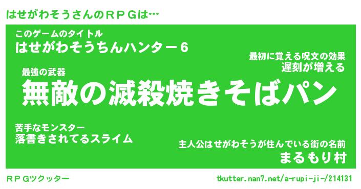 | 男性向けラノベタイトル風あだ名 | 『ハセガワソウアートオンライン』 |