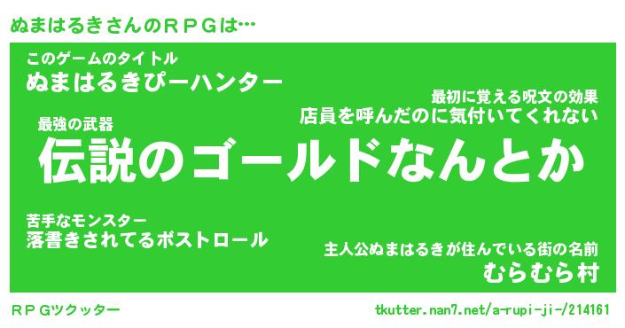 | ファンタジー風あだ名 | 『ヌマフェル』『エターナルヌマハルキー』 |