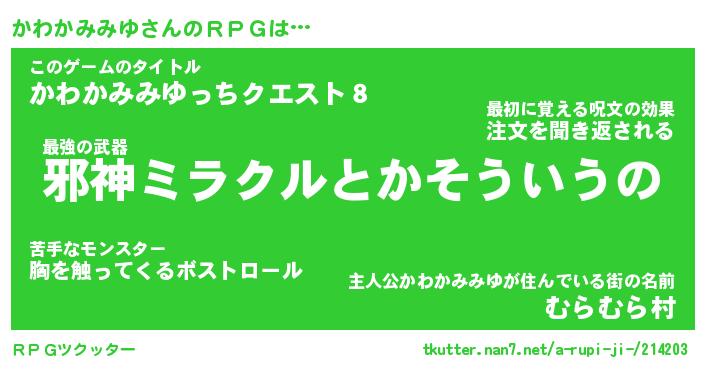 | 伝説のあだ名 | 『封印されし竜騎士かわかみみゆ』 |