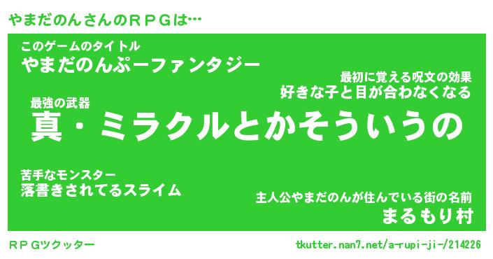 | ファンタジー風あだ名 | 『ヤマフェル』『エターナルヤマダノンー』 |