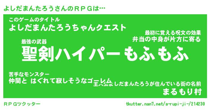 | 伝説のあだ名 | 『伝説の竜騎士よしだまんたろう』 |
