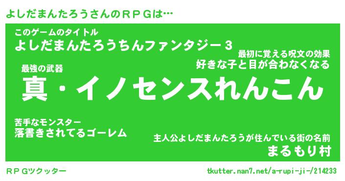 | 肩書あだ名 | 『よしだまんたろう御曹司』 |