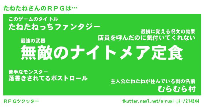 | ファンタジー風あだ名 | 『タネフェル』『エターナルタネタネー』 |