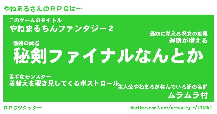 | ヒーロー風カッコイイあだ名 | 『スーパーヤネマル』『魔戒騎士ヤネ』 |