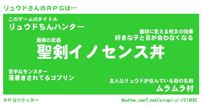 | 男性向けラノベタイトル風あだ名 | 『リュウドの憂鬱』 |