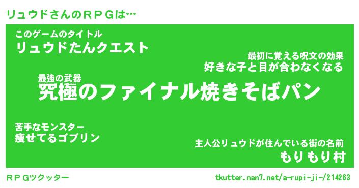 | ファンタジー風あだ名 | 『リュフェル』『エターナルリュウドー』 |