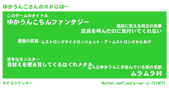 | 伝説のあだ名 | 『封印されし竜騎士ゆかうんこ』 |
