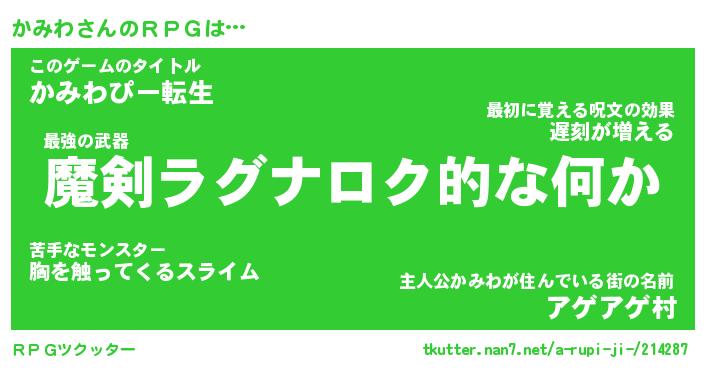 | 男性向けラノベタイトル風あだ名 | 『かみわの憂鬱』 |