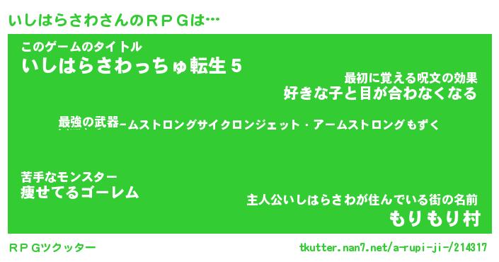 | 伝説のあだ名 | 『封印されし竜騎士いしはらさわ』 |