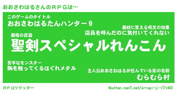 | 伝説のあだ名 | 『伝説の竜騎士おおさわはる』 |